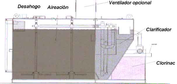 aireación. En el compartimiento de aireación, las aguas residuales sin procesar se mezclan con el líquido que contiene una concentración grande de bacterias aerobias (contenidas en forma natural en las aguas servidas) muy activas que comienzan a consumir el material de desecho orgánico de las aguas residuales. El aire se proporciona al líquido a través de los difusores del aire, que apoya las actividades de las bacterias aerobias.