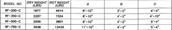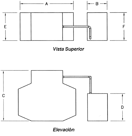 La tercera operación es el proceso de la desinfección. El fluído pasa del compartimiento de clarificación y filtración a través de la tubería interna y entran al compartimiento de clorinación. Este compartimiento permite que el líquido se mezcle con cloro o pase a través de un sistema ultravioleta en aquellas áreas donde la desinfección por medio de cloro no se permite. Luego conserva el líquido en este compartimiento hasta que todas las bacterias que fueron permitidas pasar a través de los compartimientos anteriores sean eliminados. A continuación véase los esquemas y dimensiones de los diferentes modelos. En el modelo, su número indica la capacidad de carga hidráulica de la planta en galones/día.
